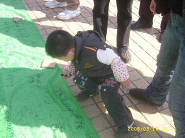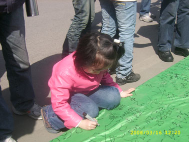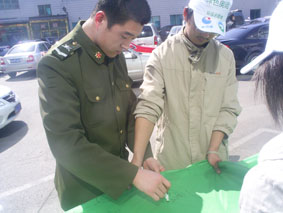 3月16日,為倡議有車族參與本活動(dòng),加強(qiáng)對廢油液排放的監(jiān)督,來自奧吉娜、東北大學(xué)、沈陽大學(xué)、中國醫(yī)大的環(huán)保志愿者組成了近千人的宣傳隊(duì),在桃仙機(jī)場、北方圖書城、卓展商場、每家瑪、家樂福金牛店、麥德龍展開了宣傳。上午10時(shí),活動(dòng)現(xiàn)場設(shè)置了“支持回收車用廢棄油液-利國利民利已利后世”條幅和巨幅“迎奧運(yùn)天藍(lán)水清地綠-車用廢棄油液回收活動(dòng)之沈城十萬駕車者聯(lián)合簽名”錦旗,志愿者現(xiàn)場講解車用油液對環(huán)保的危害,倡議有車人士對隨意排放現(xiàn)象進(jìn)行監(jiān)督。活動(dòng)得到有車族的積極響應(yīng)與大力支持,不到半天,已有近萬名應(yīng)倡者在錦旗上簽名,從中可以看出沈陽市民迎接奧運(yùn)的熱情和對和諧社會(huì)的向往,體現(xiàn)了沈陽市民普遍具有較強(qiáng)的環(huán)保意識(shí)和責(zé)任感。