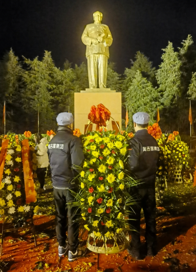 奧吉娜集團(tuán)總裁魏國平博士特選派員工赴韶山?jīng)_,代表奧吉娜集團(tuán)向紀(jì)念毛澤東銅像敬獻(xiàn)花籃祭拜偉人,表達(dá)奧吉娜人對這位偉人最崇高的敬意和最深切的懷念。