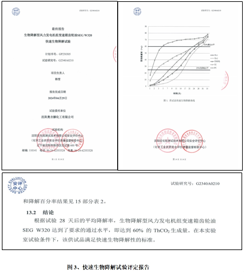 奧吉娜生物降解型風(fēng)力發(fā)電機(jī)組變速箱齒輪油SEG W320產(chǎn)品已順利通過快速生物降解試驗的評定,該產(chǎn)品的生物累積降解率高達(dá)75.1%,完全滿足快速生物降解性的標(biāo)準(zhǔn)(見圖3)。